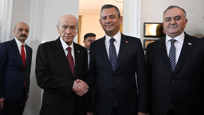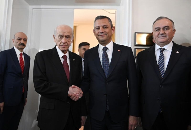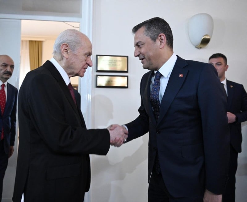 CHP Genel Başkanı Özgür Özel, MHP Genel Başkanı Devlet Bahçeli'yi Meclis'teki makamında ziyaret etti. Bahçeli, Özel'i kapıda karşıladı.