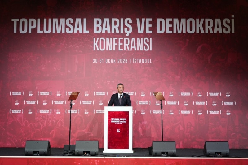CHP Genel Başkanı Özgür Özel, partisinin İstanbul Kongre Merkezi'nde düzenlediği Toplumsal Barış ve Demokrasi Konferansı'na katıldı.