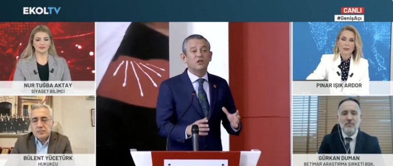 EKOL TV ekranlarında yayınlanan "Geniş Açı" programında son seçimleri doğru tahmin eden BETİMAR Araştırma Yönetim Kurulu Başkanı Gürkan Duman; "Esad ile görüşülmesi talebi sonrasında yaptığımız çalışmada, CHP’nin oylarında ciddi bir düşüş olduğunu görüyoruz. Demek ki iktidarın izlediği politikalar, toplum tarafından benimseniyor." dedi.