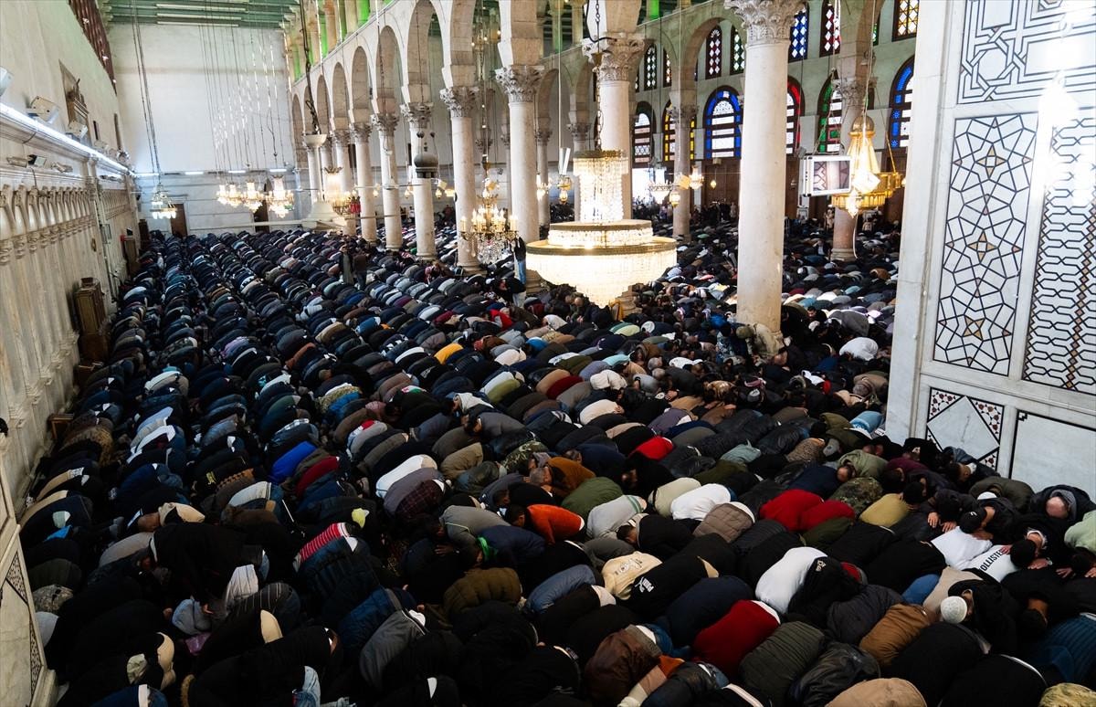 Şam'da binlerce kişi, 61 yıllık Baas rejimi ve Esad Ailesi iktidarının devrilmesinin ardından Emevi Camii'nde ilk cuma namazını kılmanın heyecanını yaşadı.
