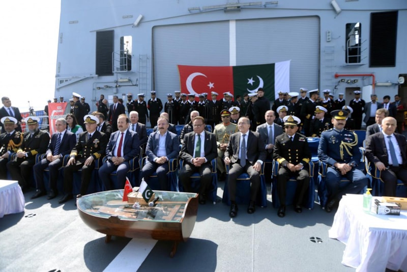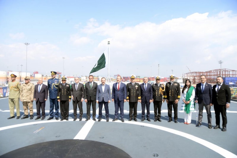 Pakistan Milli Günü'nün de kutlandığı geminin güverte bölümündeki törende Pakistan bayrağı göndere çekilip 2 ülkenin milli marşı söylendi.