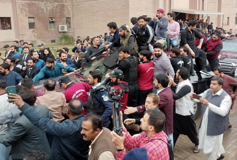 Yer yer güvenlik güçleri ile Khan'ın destekçileri arasında tansiyon yükseldi. Khan, bugün 4 duruşmadan 2’sine katılamazken, terörizm, rakip bir siyasetçiye karşı cinayete teşebbüs ve rüşvet iddialarıyla açılan davalarda hakimler Khan hakkında belirli süreyle gözaltına alınmayı engelleyen "geçici kefalet" kararı verdi.