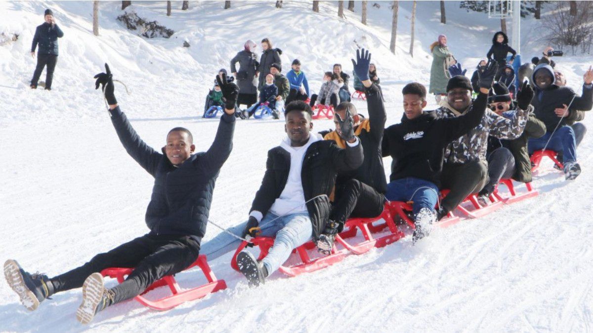 Palandöken'e gelen Afrikalı öğrencilerin kızak keyfi VİDEO