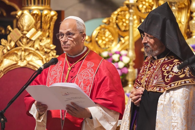 Katedrale "dua ziyareti" gerçekleştiren Papa 14. Leo'ya Ermeni Patriği Sahak 2. Maşalyan eşlik etti. Papa ve Maşalyan, insanlığın geleceği için birlikte dua etti.