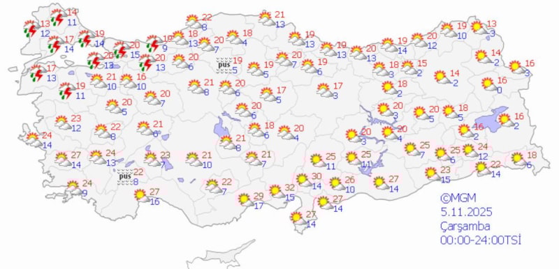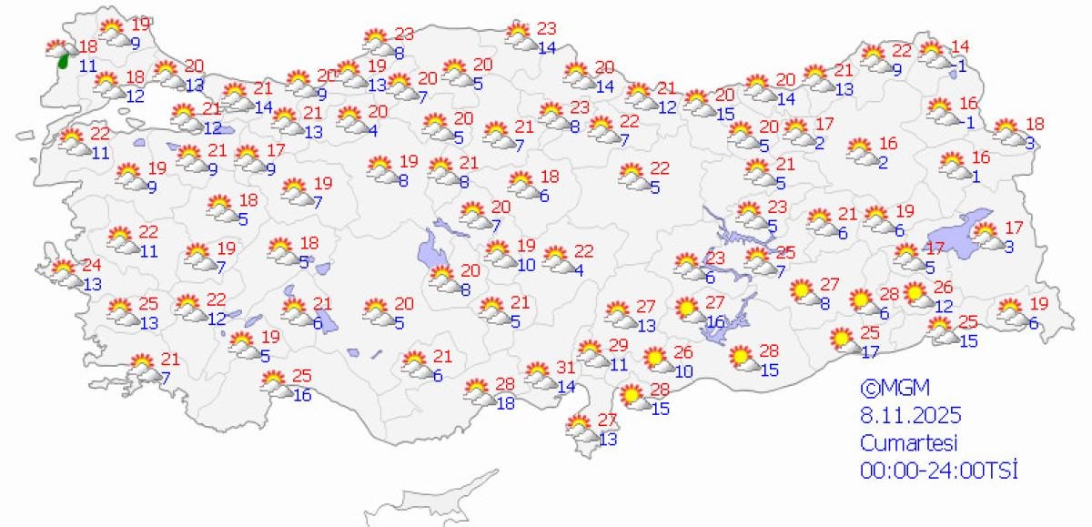 Çelik, hafta sonu ise sadece Trakya'nın batı kesimlerinin çok bulutlu ve yer yer kısa süreli sağanak geçişlerinin görüleceğini ifade etti.