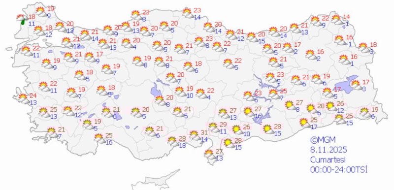 İzmir'de ise önümüzdeki üç gün boyunca yağış beklenmediğini dile getiren Çelik, havanın bulutlu olacağını ve en yüksek sıcaklığın 23 ila 24 derece bandında olacağını aktardı.