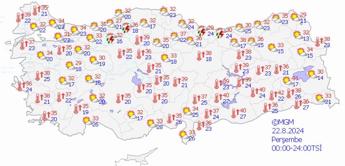 Önümüzdeki hafta boyunca hava sıcaklıklarının kıyı kesimlerde mevsim normallerinin 1 ila 3 derece; Marmara Bölgesi'nin güney kesimleri, İç Ege, Akdeniz Bölgesi’nin iç kesimleri, İç Anadolu, Karadeniz Bölgesi’nin iç kesimleri ve Doğu Anadolu Bölgesi ile Güneydoğu Anadolu Bölgesi’nin kuzey kesimlerinde mevsim normallerinin 4 ila 8 derece üzerinde seyredeceği tahmin ediliyor.
