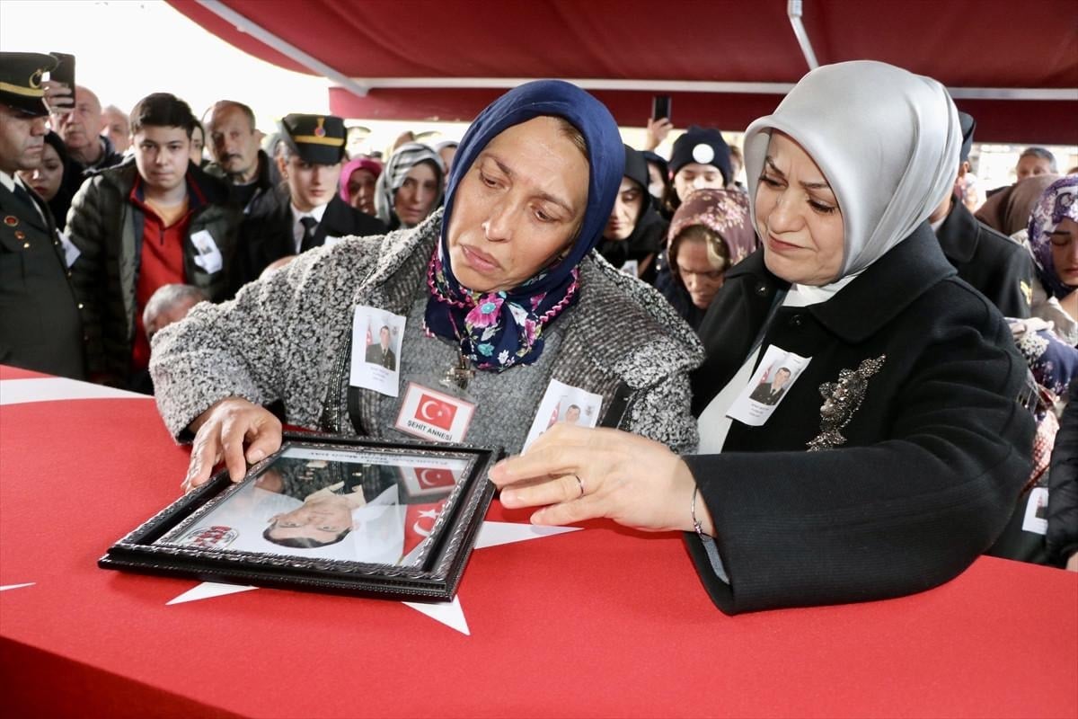 Baba Mecit, anne Hatice ve askeri kamuflaj giyen kardeşi Saygiye Elif Day ile yakınları, burada taziyeleri kabul etti.