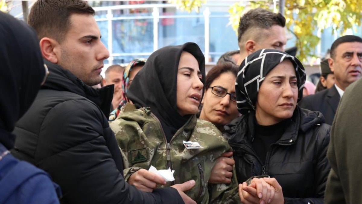 Öte yandan, şehidin cenazesinde ayakta durmakta güçlük çeken eşi Çilem Serinkan’ın gözyaşları yürekleri dağladı.