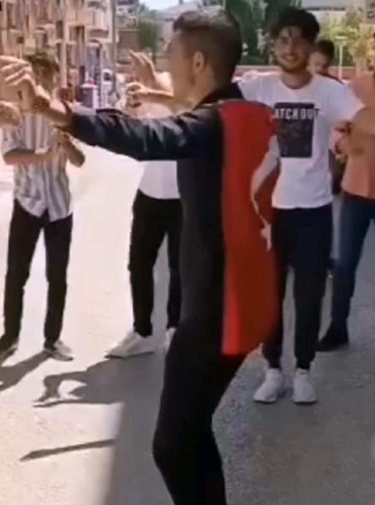 Sırtında ay yıldızlı bayrakla arkadaşlarıyla doyasıya eğlenen şehidin görüntüsü, görenleri duygulandırdı.