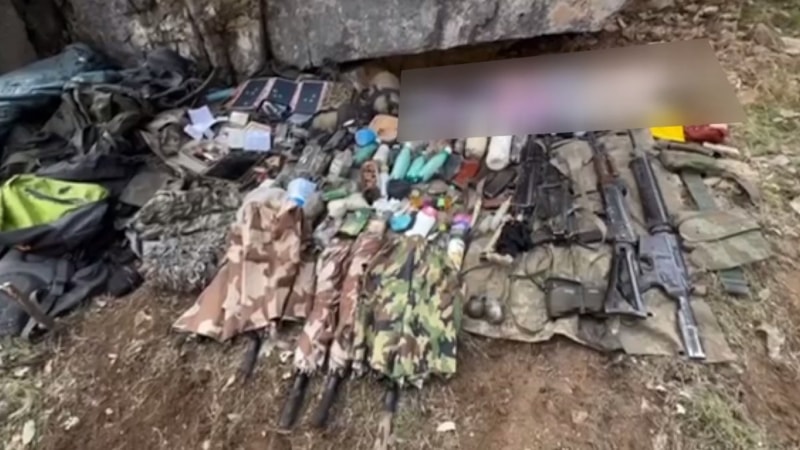 1 adet M-16 piyade tüfeği, 3 adet AK-47 piyade tüfeği ve 10 şarjör, 5 el bombası, 2 hücum yeleği, 1 termal başlık, El Yapımı Patlayıcı (EYP) yapımında kullanılan malzeme, pil blokları ve örgütsel dokümanlar.