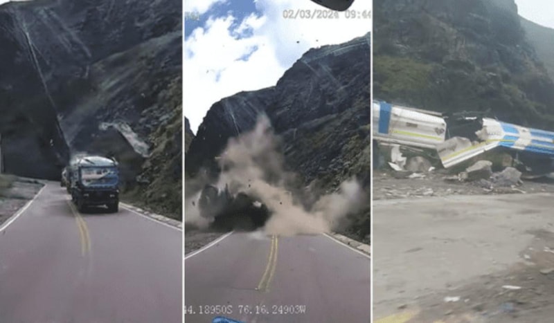 Düşen parçalar bir tırın araç içi kamerası tarafından saniye saniye kaydedilirken, görüntüler dehşet saçtı.