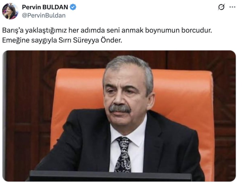 Buldan, X hesabı üzerinden yaptığı paylaşımda, dostu Sırrı Süreyya Önder'i andı ve barışa yaklaşılan her adımda da anacağını söyledi.