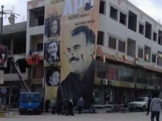 Fotoğraf Suriye'deki PYD'de kontrolünde yer alan Derik'te çekildi. Ankara'da katliam yapan ve 35 masum insanın ölümüne neden olan PKK'lı terörist Seher Çağla Demir ve yine Ankara'da bir başka eylemde kendini patlatan canlı bomba Abdülkadir Sömer Abdullah Öcalan posterinde yer alıyor..
