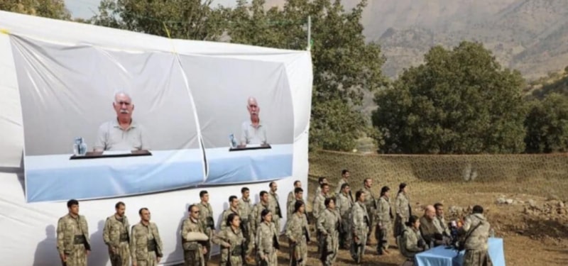 Öcalan’ın çağrısı doğrultusunda örgüt, 11 Temmuz 2025’te Irak Kürt Bölgesel Yönetimi sınırları içindeki Süleymaniye kırsalında bir “silah bırakma töreni” düzenledi.