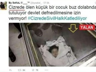 Terör örgütü PKK yandaşları son olarak israil'in geçtiğimiz yıl Ağustos ayında Gazze'ye yönelik hava saldırılarında Refah'ta hayatını kaybeden küçük bir çocuğun derin dondurucudaki görüntüsünü Cizre'deki çocuk gibi sosyal medyada yaydı.