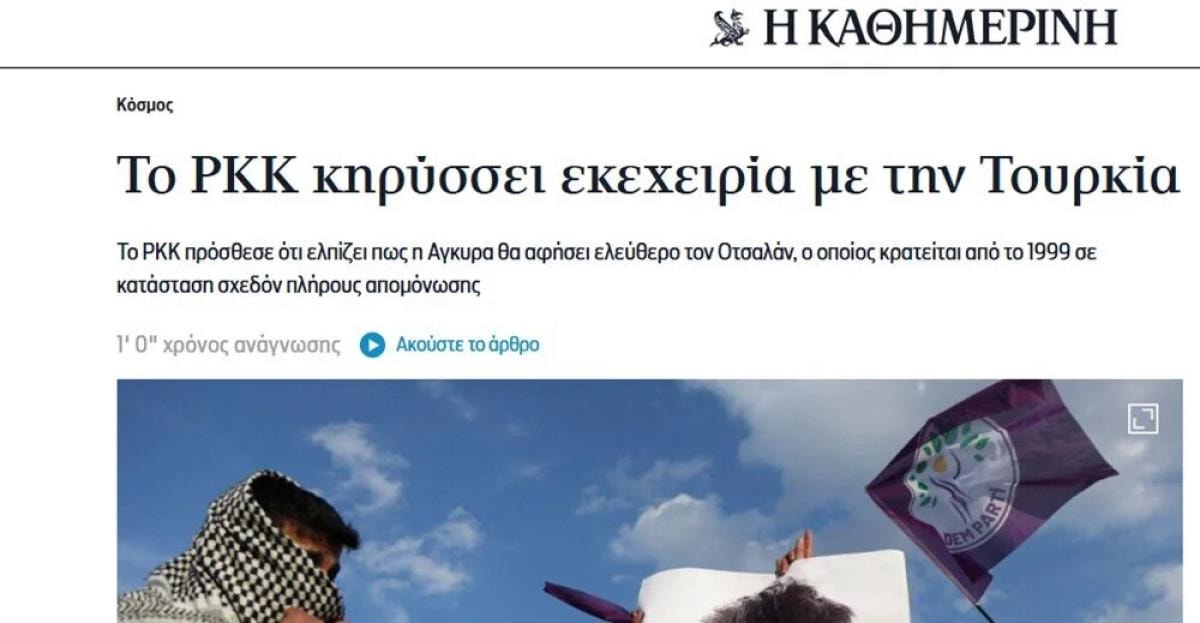 KATHİMERİNİ: PKK TÜRKİYE İLE ATEŞKES İLAN ETTİ
