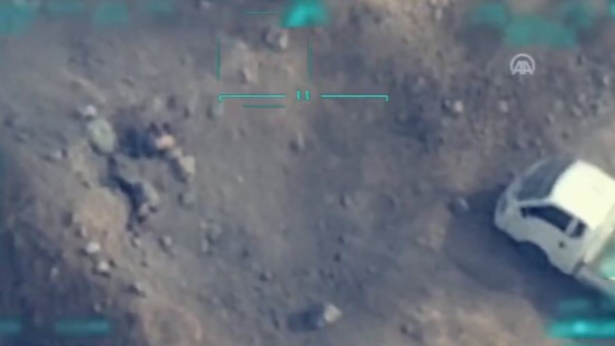 İki teröristin etkisiz hale getirildiği operasyon, SİHA tarafından saniye saniye kaydedildi.