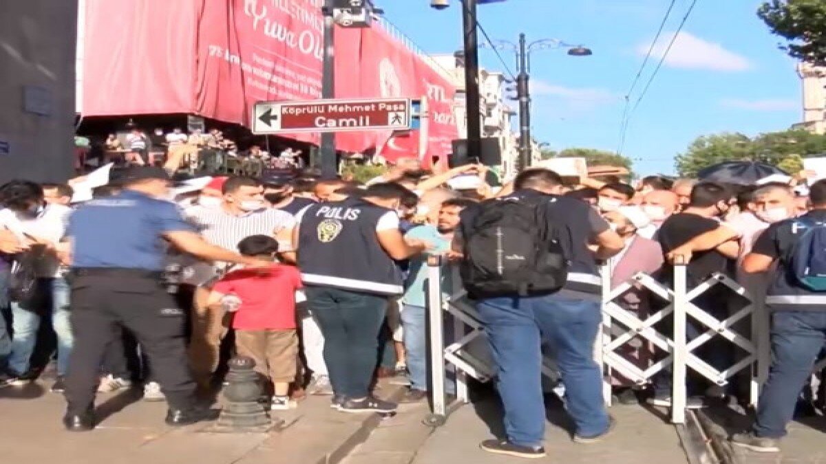 Ayasofya'ya girmek isteyen vatandaşlar ise güvenlik kontrol noktalarında yoğunluk oluşturmaya başladı. İlerleyen saatlerde bariyer önündeki kalabalık arttı. Çemberlitaş yönünde bariyerleri aşan kalabalık, koşarak Ayasofya'ya ilerledi.