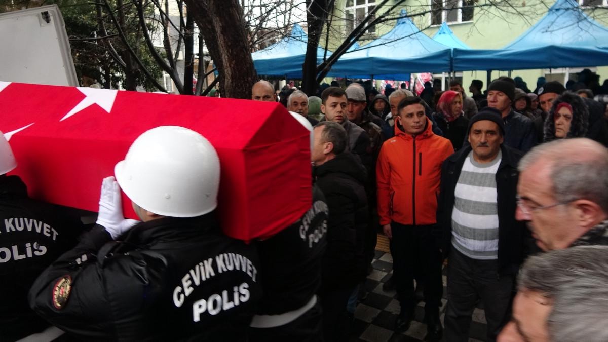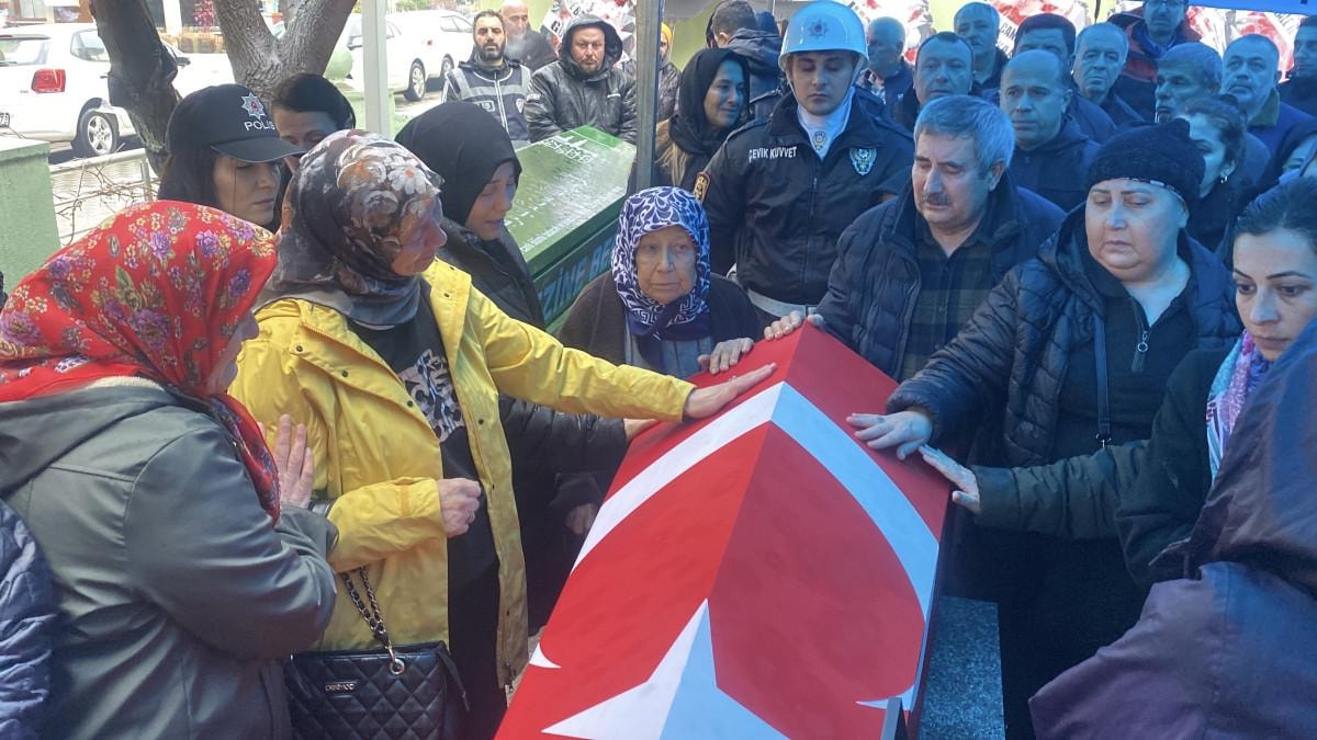 Memleketi Çanakkale'nin Ezine ilçesine getirilen polis Doğan Biçici'nin Türk bayrağına sarılı tabutu önünde ailesi gözyaşlarına hakim olamadı.