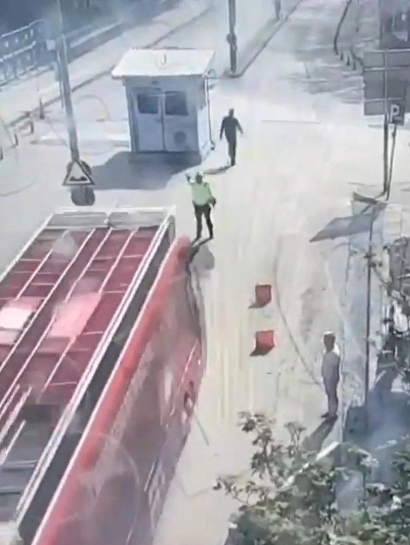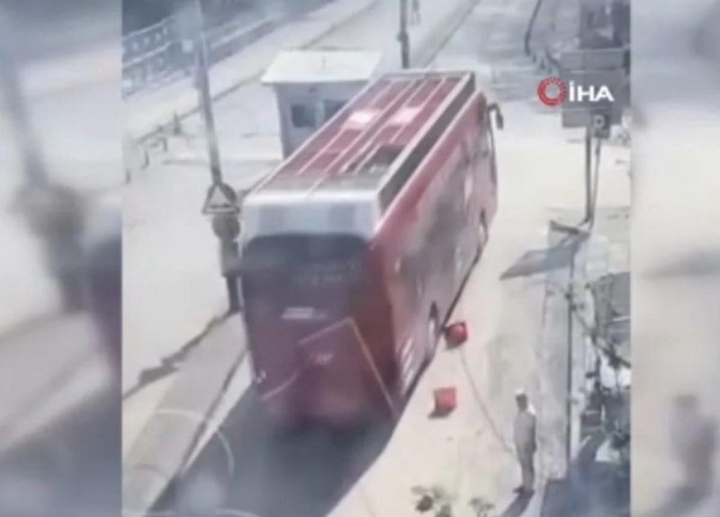 Trafik polisi, olaydan otobüsün sağına kaçarak yara almadan kurtulurken başlatılan soruşturma kapsamında şoför gözaltına alındı.