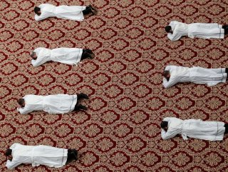 Yemin ederek Presbiteryen Kilisesi’ndeki görevlerine başlamaya hak kazanan rahipler, Papa Francis’in önünde önce diz çökerek, daha sonra da uzanarak Katolik Kilisesi liderine olan bağlılıklarını gösterdi.