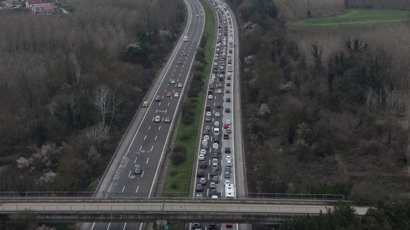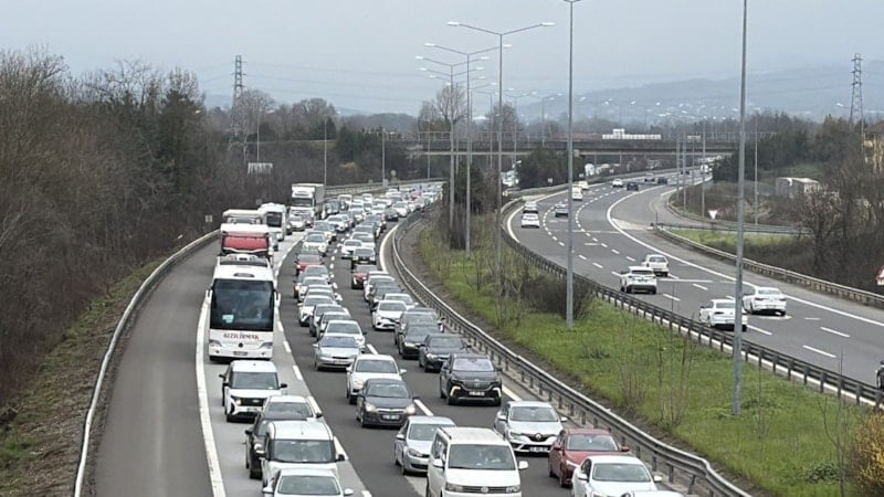 İstanbul istikametine seyreden araçların oluşturduğu yoğunluk nedeniyle trafik zaman zaman durma noktasına gelirken araç hızları, yer yer saatte 20 kilometreye kadar düştü.