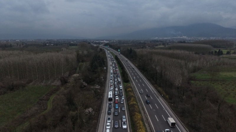Ramazan Bayramı tatilinin sona ermesiyle birlikte vatandaşlar araçları ile beraber yollara koyulurken Anadolu Otoyolu'nun Düzce geçişinde oluşan trafik yoğunluğu havadan görüntülendi.