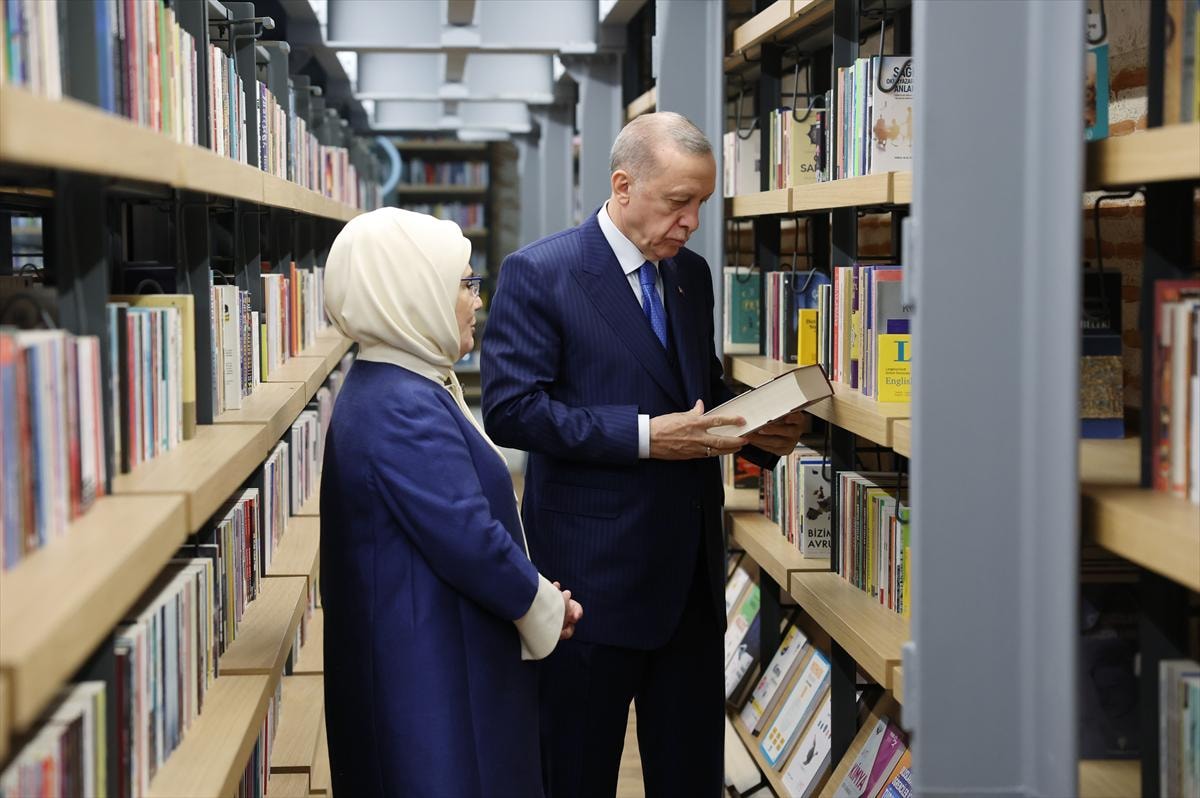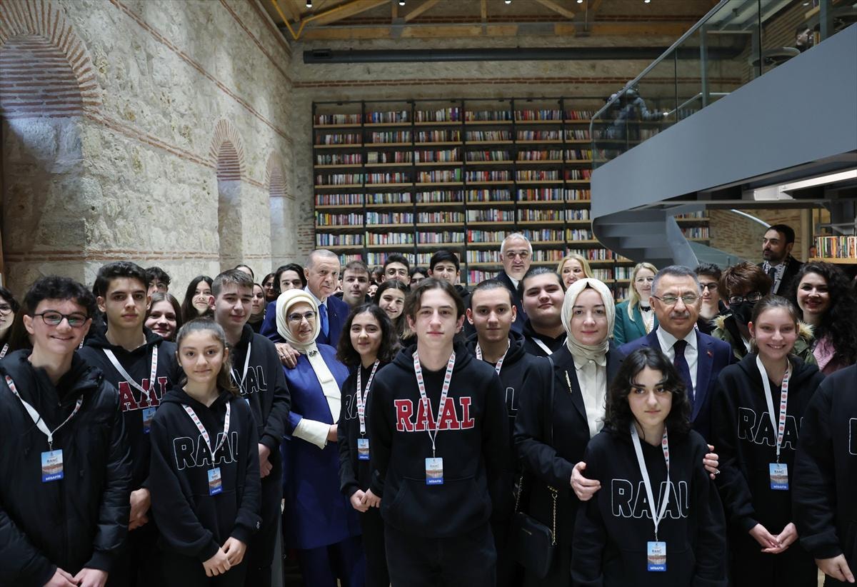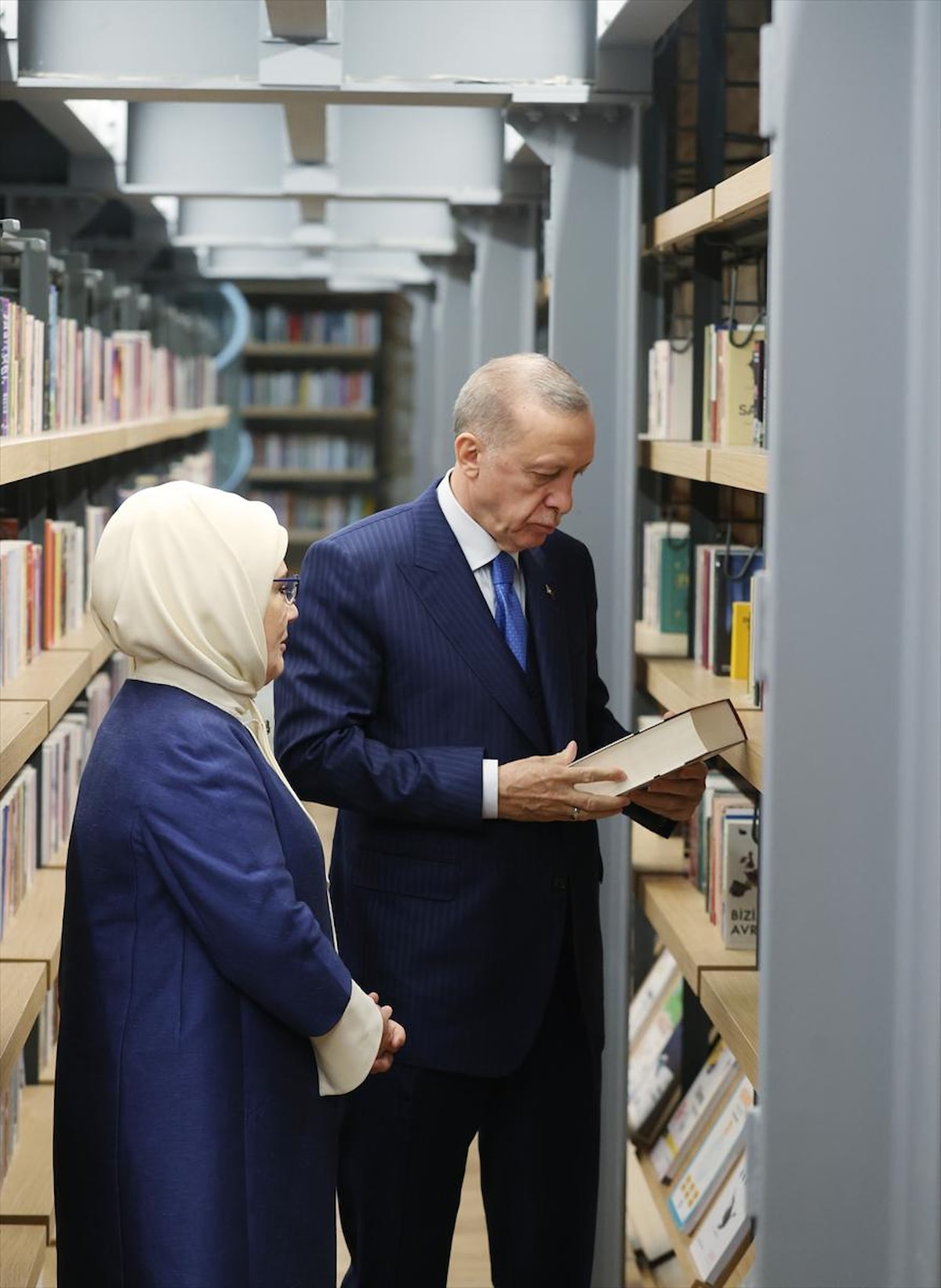 Cumhurbaşkanı Erdoğan, program öncesinde eşi Emine Erdoğan'la birlikte Rami Kütüphanesi'ni gezdi, öğrencilerle sohbet etti.