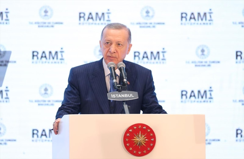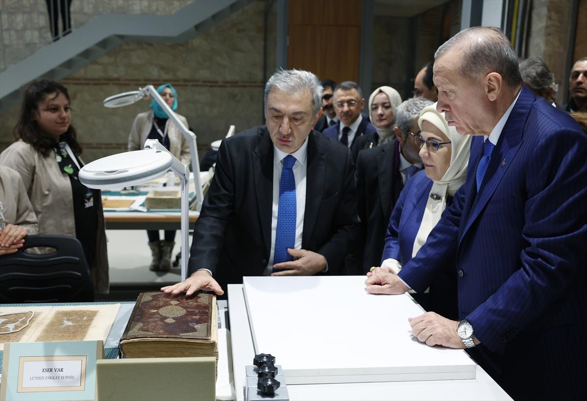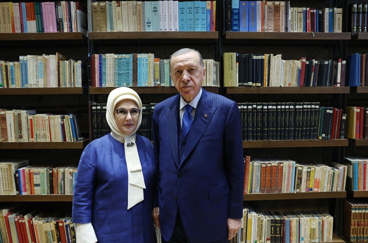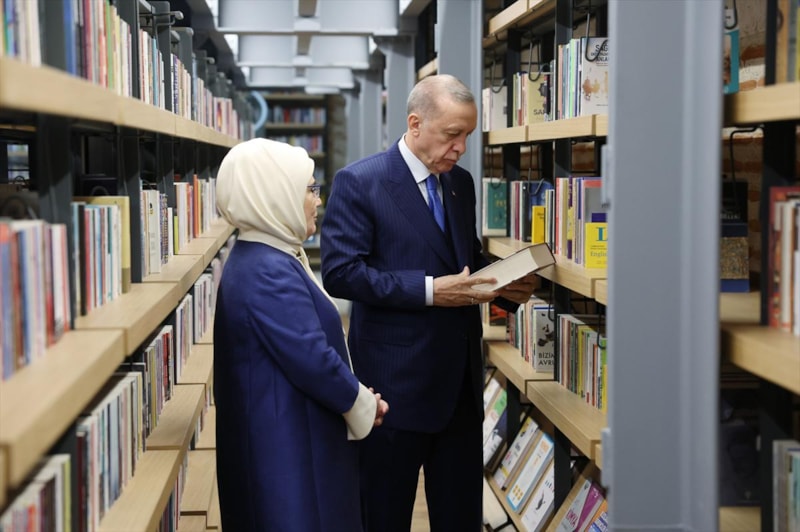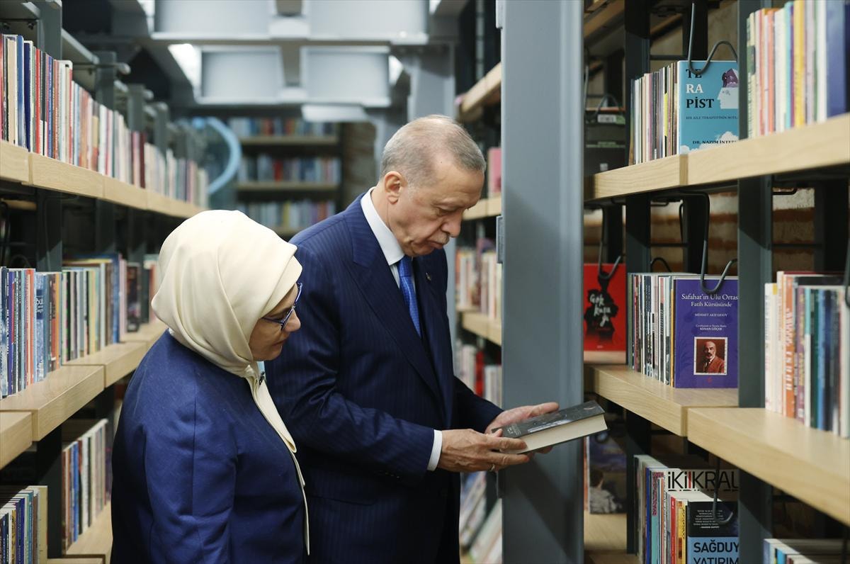 Cumhurbaşkanı Erdoğan, program öncesinde eşi Emine Erdoğan'la birlikte Rami Kütüphanesi'ni gezdi, öğrencilerle sohbet etti.
