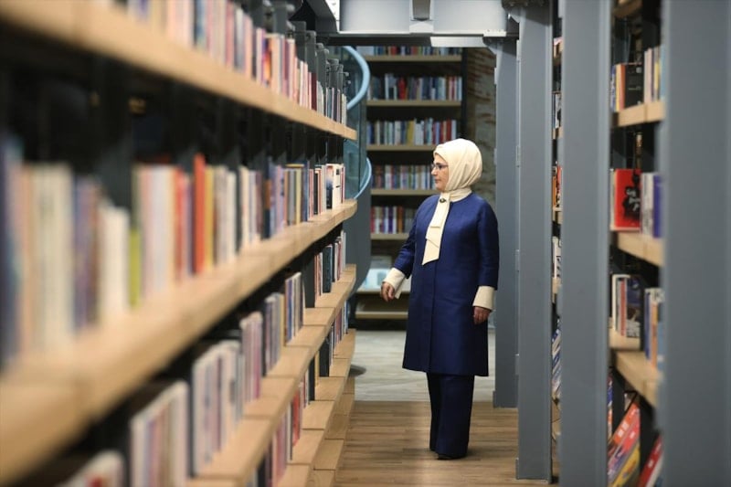 Cumhurbaşkanı Recep Tayyip Erdoğan, gençlerle birlikte tüm vatandaşların kütüphaneyle ünsiyeti ne kadar güçlendirilirse geleceğin o derece emniyette olacağının altını çizerek, "Az önce buradaki bir Anadolu Lisesi'nin mensubu gençlerimizle bir arada olduk. Ve 'Cumhurbaşkanım 5 dakikada artık okulumuzdan buraya geliyoruz' dediler. 5 dakika. 'Başka?' dedim, 'Onları da söyleyin bakalım.' Artık burada çorbanızı içecek misiniz? İçeceksiniz. Çayınızı içecek misiniz? İçeceksiniz. Kahvenizi içecek misiniz? İçeceksiniz. Kek, onu da yiyeceksiniz, para yok. Tabii çok mutlular. Yarın sabahtan itibaren bu uygulama da başlıyor." diye konuştu.
