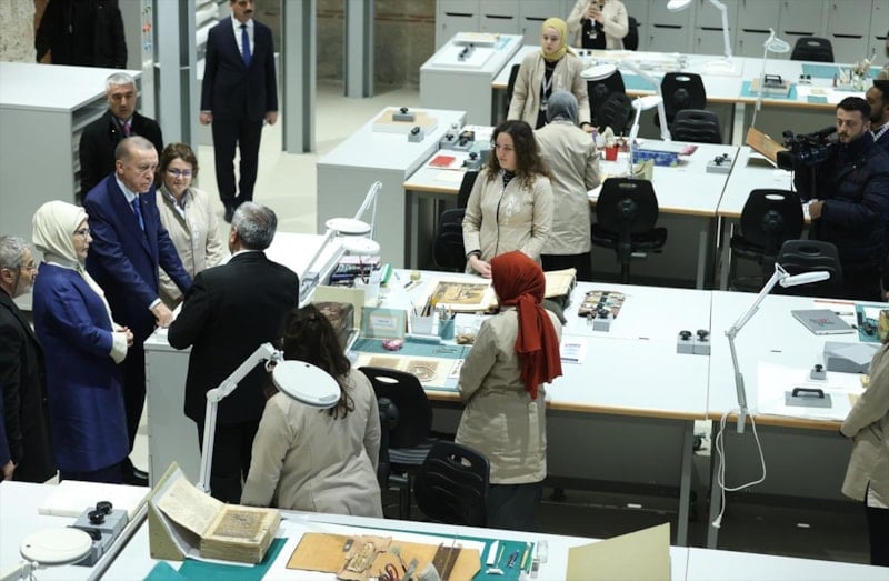 Geriye doğru bakıldığında, kütüphanelerin ne kadar zengin, ne kadar yaygın, ne kadar hareketliyse medeniyetin o derece ürettiğini, devletin o derece güçlü, milletin o derece müreffeh olduğunu dile getiren Erdoğan, "Bizim medeniyetimiz kitapla, defterle, kalemle, mürekkeple, okumakla, anlamakla, sormakla, anlatmakla yoğrulmuş, ilimle irfanla hikmet ve tefekkürle kıvamını bulmuştur. Duvarları kitaplarla dolu bir kütüphaneyi en kıymetli hazinelerden daha üstün tutan ecdadımız, her kütüphaneyi cennetten bir köşke benzetmiştir. Alimleri, gölgelerinde soluklanılan cennet ağaçlarıyla kıyaslayan ecdat, onların eserlerini de bu ağaçların meyveleri olarak görmüştür. Elhamdülillah, nasıl bir ecdada sahibiz. İnşallah biz de onlara layık oluruz." değerlendirmesini yaptı.