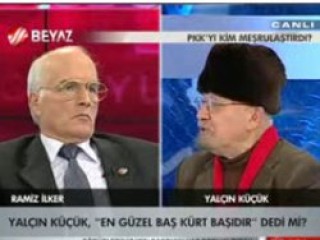 Emekli Paşa Ramiz İlker'in Yalçın Küçük'e yönelik ağır ithamlarda bulundu. Küçük siz Kürtlere 'Ben sizin renklerinize saygı duyuyorum ama siz de Türk bayrağına saygı duyun dediniz' Kusura bakmayın ben bu konuda sizden ayrılırım. Küçük'e yönelik sözlerini devam ettiren Paşa'ya Küçük "tamam tamam" diyerek müdahale etti.