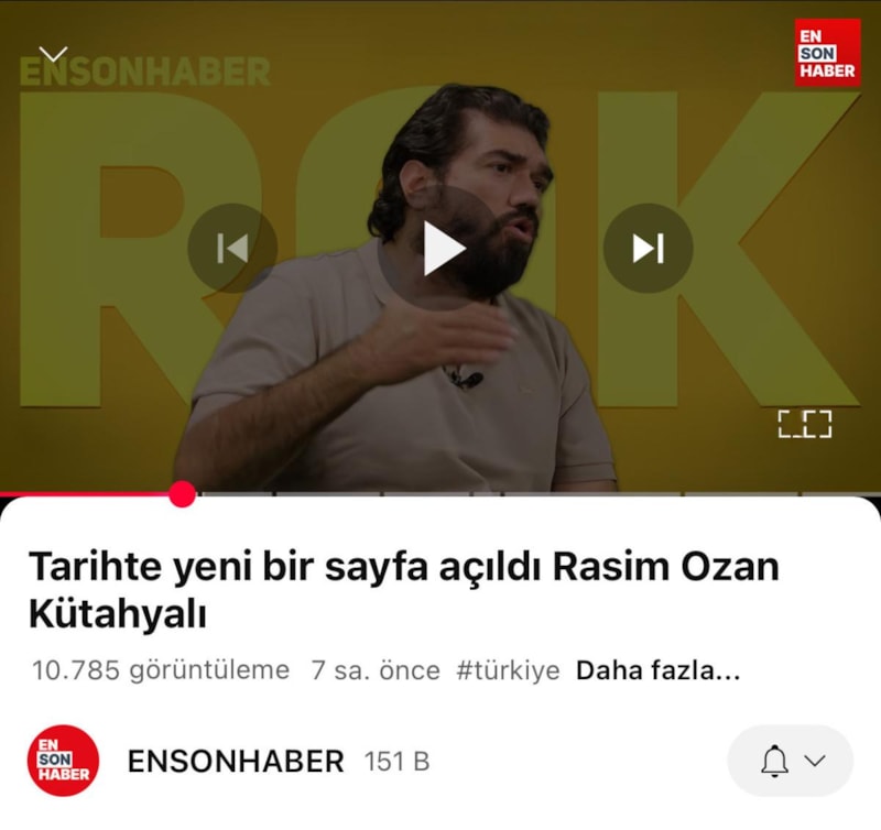 Rasim Ozan Kütahyalı, Ensonhaber YouTube kanalında şunları söyledi: