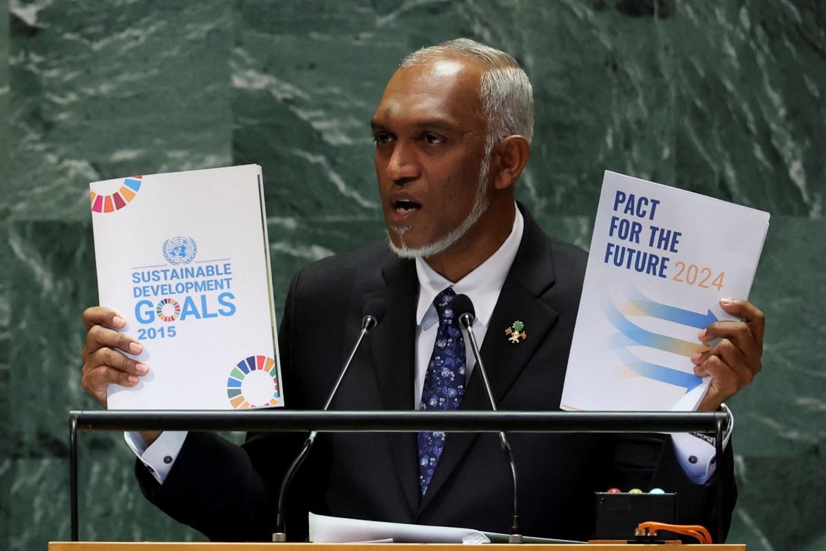 Maldivler Devlet Başkanı Muhammed Muizzu, uluslararası kuruluşların yenilenmesi yönündeki çabaların ana gündem olduğu BM Geleceğin Zirvesi'ndeki konuşmasında, "Gelecek nesiller, Gazze'deki soykırım savaşını durdurma cesaretinin gösterildiği, Filistin Devleti'nin BM'ye tam üye kabul edildiği, BM'nin insan hakları suçlularından hesap sorma cesaretini gösterdiği, eşit, yenilikçi ve gerçekçi bir gelecek talep ediyor." dedi.