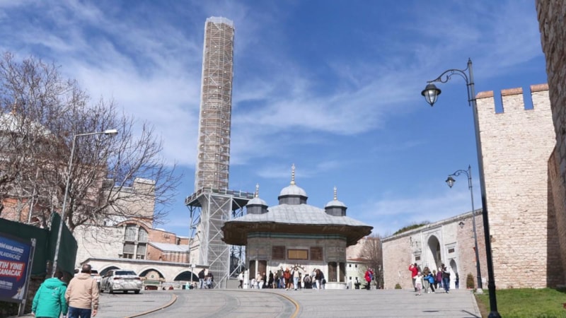Ayasofya Camii restorasyonunda daha önce çatlak tespit edilen II.Bayezid Minaresi'nde söküm işlemleri başladı.