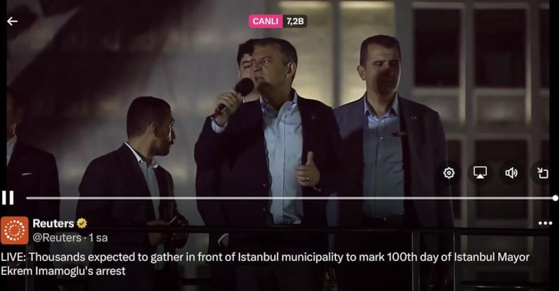 CHP'nin çağrısı sonrası bazı marjinaller, Ekrem İmamoğlu’nun yolsuzluktan tutuklanmasının 100. gününde Saraçhane’de izinsiz eylem düzenledi. İngiliz haber ajansı Reuters da mitindeki hedef gösterici konuşmaları ve yaşanan olayları canlı yayınına taşıdı.