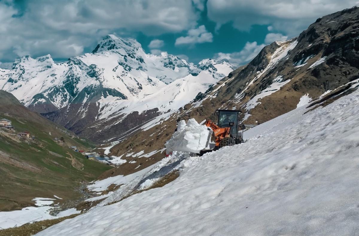 Tahpur Yaylası'nda karla kapanan yollar, Rize İl Özel İdaresi tarafından açılıyor.