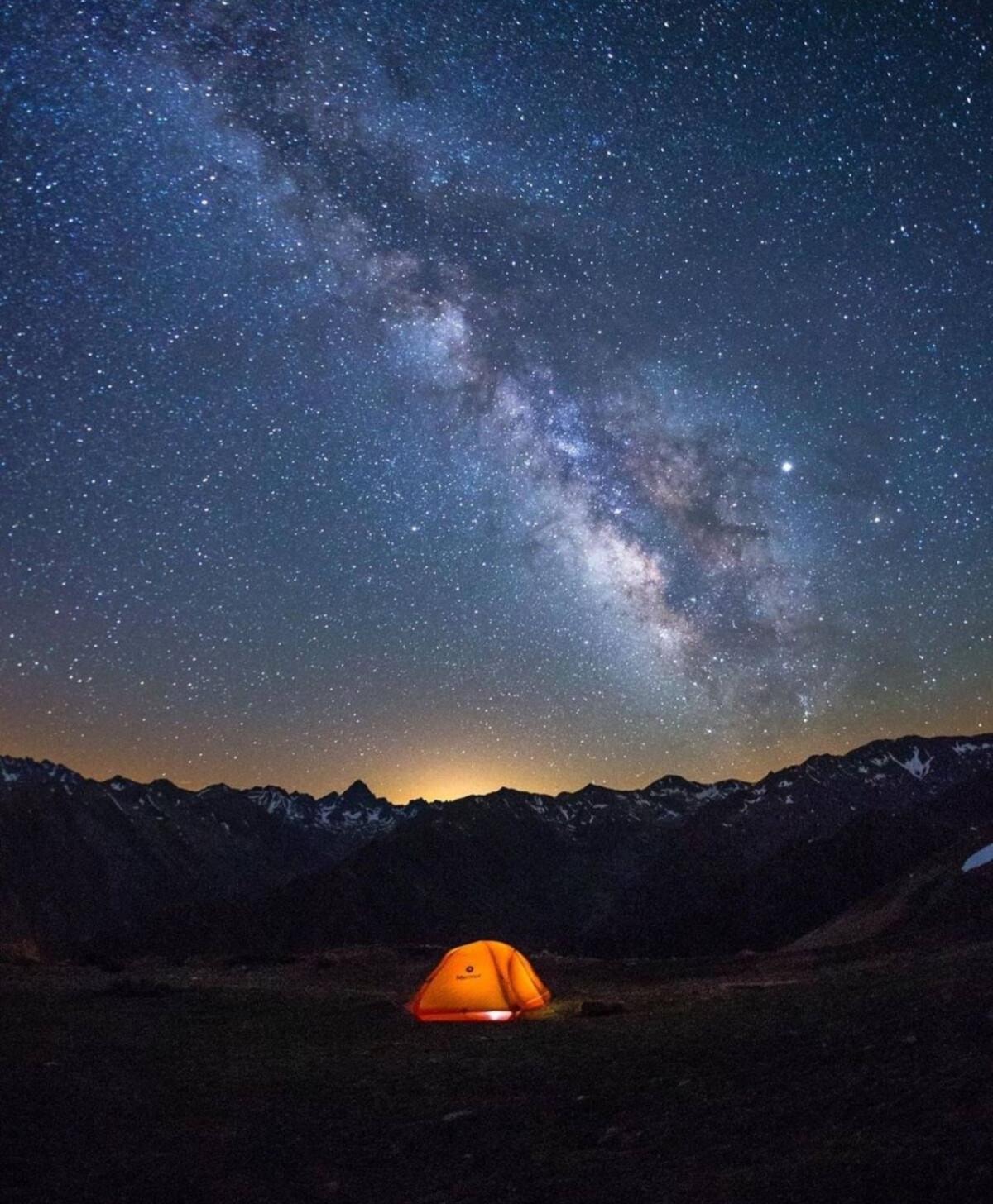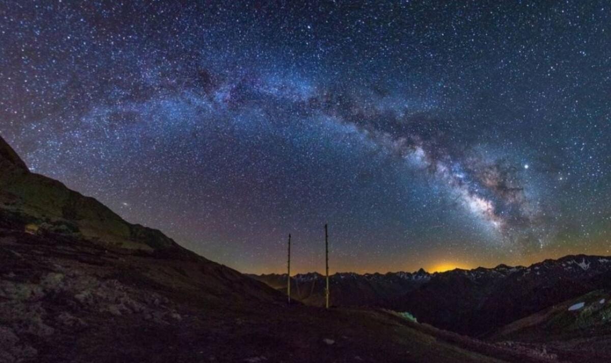 Gökyüzündeki yıldızların, dağların eteklerinden itibaren ortaya çıkardığı olağanüstü görüntüsü kadrajlara yansıyor.