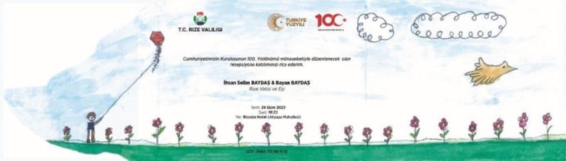 İşitme engelliler okulu öğrencisinin, Rize Valisi İhsan Selim Baydaş’a gönderdiği tebrik kartı, Cumhuriyetin 100. Yılı resepsiyon davetiyesine dönüştürüldü. Vali Baydaş, resepsiyonu öğrenciye ve ailesine hediye etti.