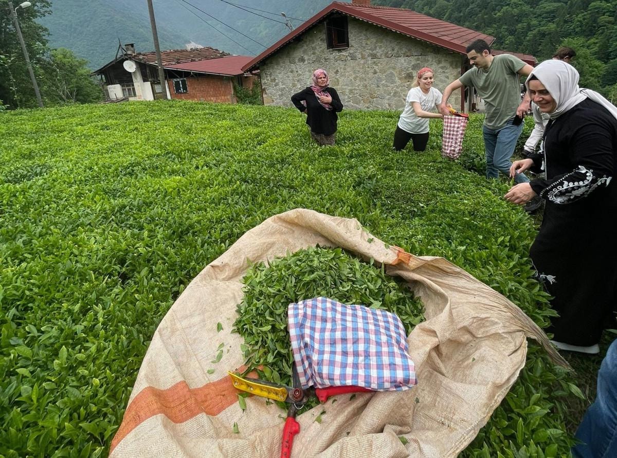 Rize’nin İkizdere ilçesi Ayvalık köyünde çay bahçesine giren İkizdere Kaymakamı Mustafa Salih Bayram ve Burcu Bayram vatandaşlarla organik çay topladı.