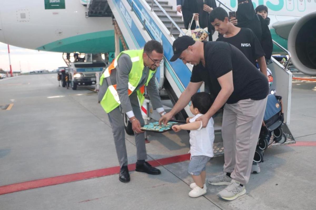 Riyad'dan 152 yolcusu ile havalanan uçak, Rize-Artvin Havalimanı'nda düzenlenen törenle karşılandı.