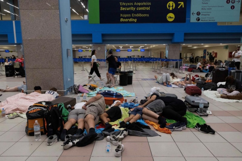 Yunanistan'daki Rodos Adası'nda günlerdir süren yangın şiddetini artırdı. Adada başlayan tahliye operasyonları sonucu bölgeden çıkarılan turistler havaalanında ve spor salonlarında yatmak zorunda kaldı.