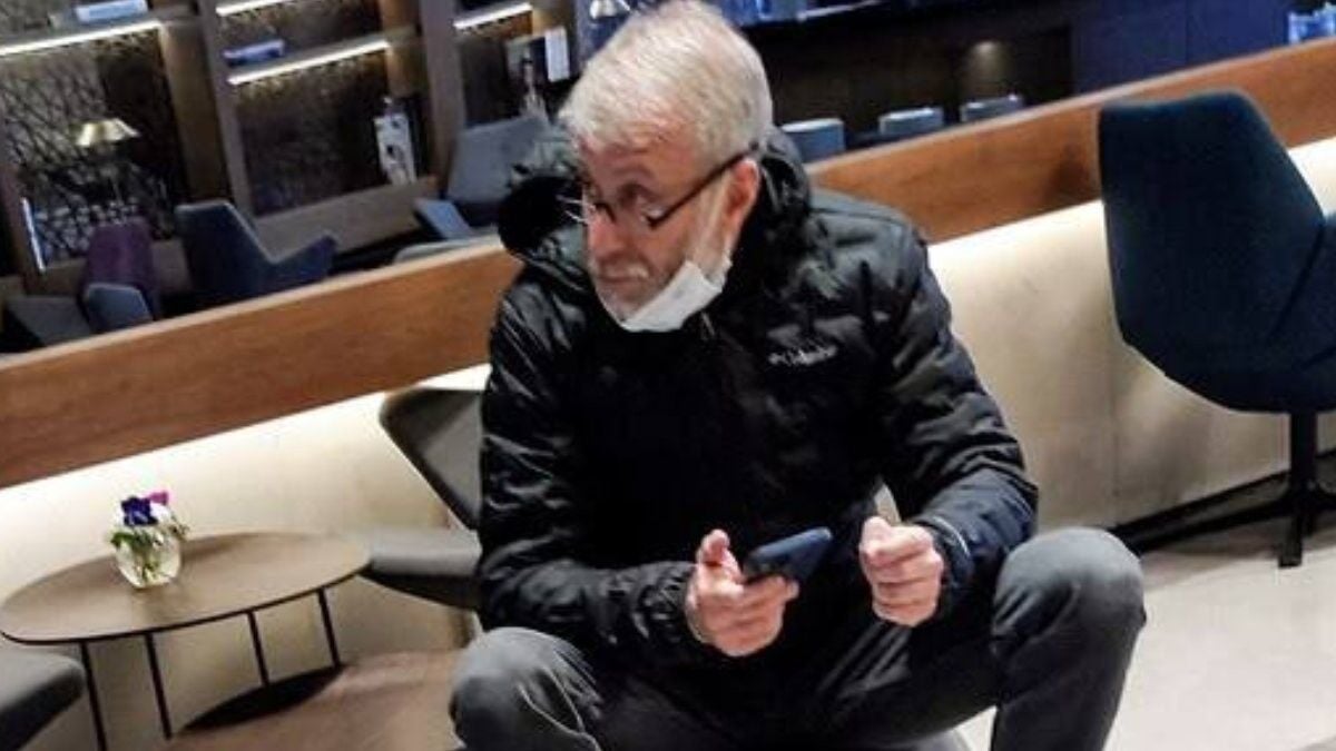 Uçuş için Tel Aviv'deki Ben Gurion Havalimanı'nda bekleyen Abramovich, objektiflere yansıdı.