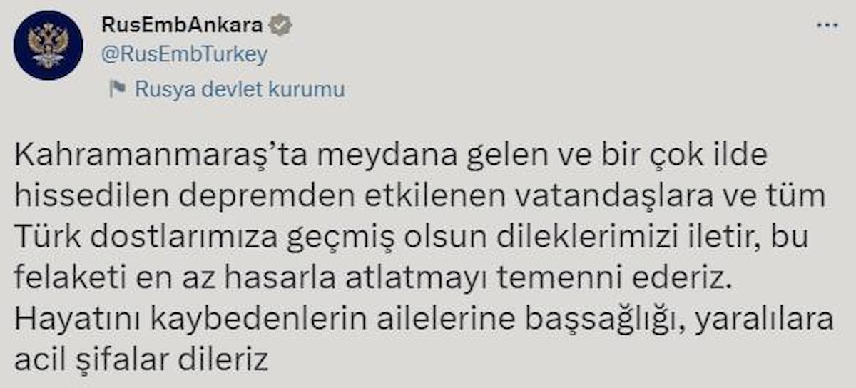 Ankara'daki Rusya Büyükelçiliği, deprem sonrasında açıklama yaptı.