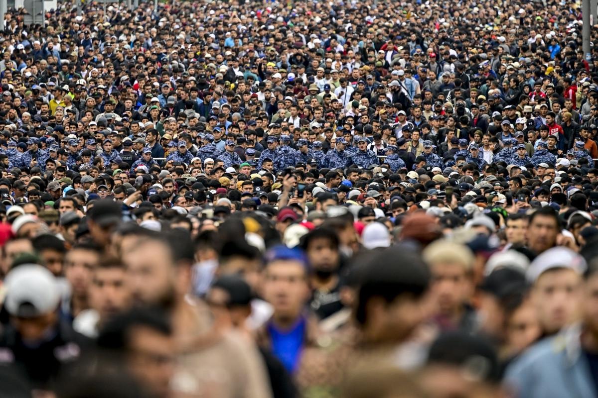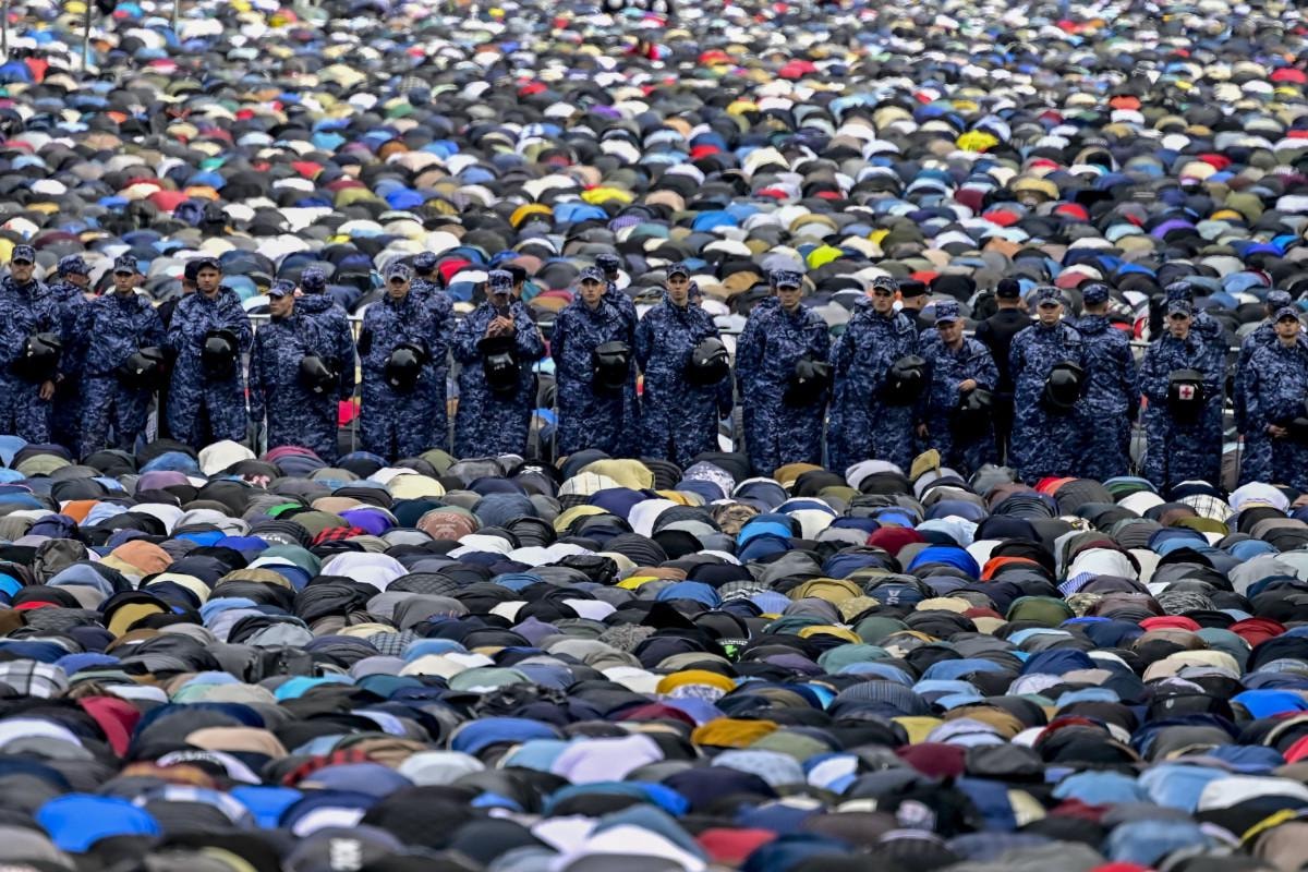 Başkent Moskova'da camilere sığmayan binlerce Müslüman, Kurban Bayramı namazını sokaklarda kıldı.