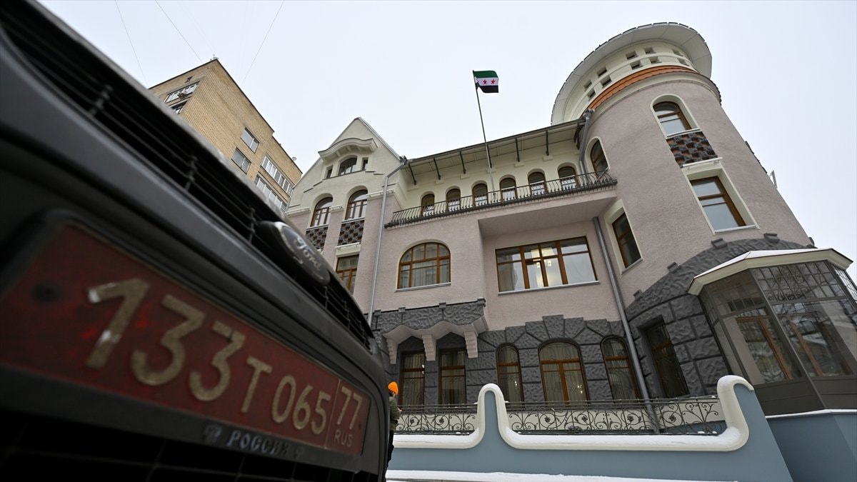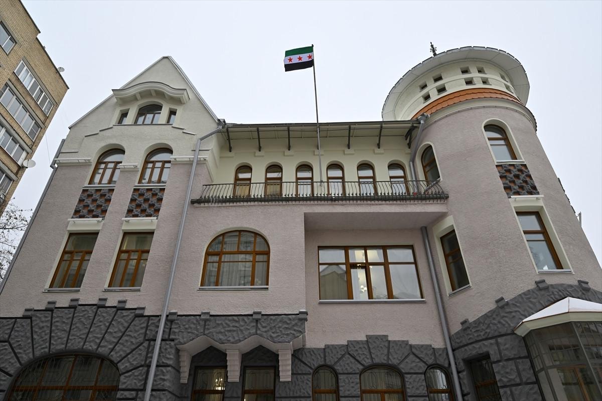 Suriye'nin Moskova Büyükelçiliği'nde de bayrak değişimi vakit kaybetmeden değiştirildi.