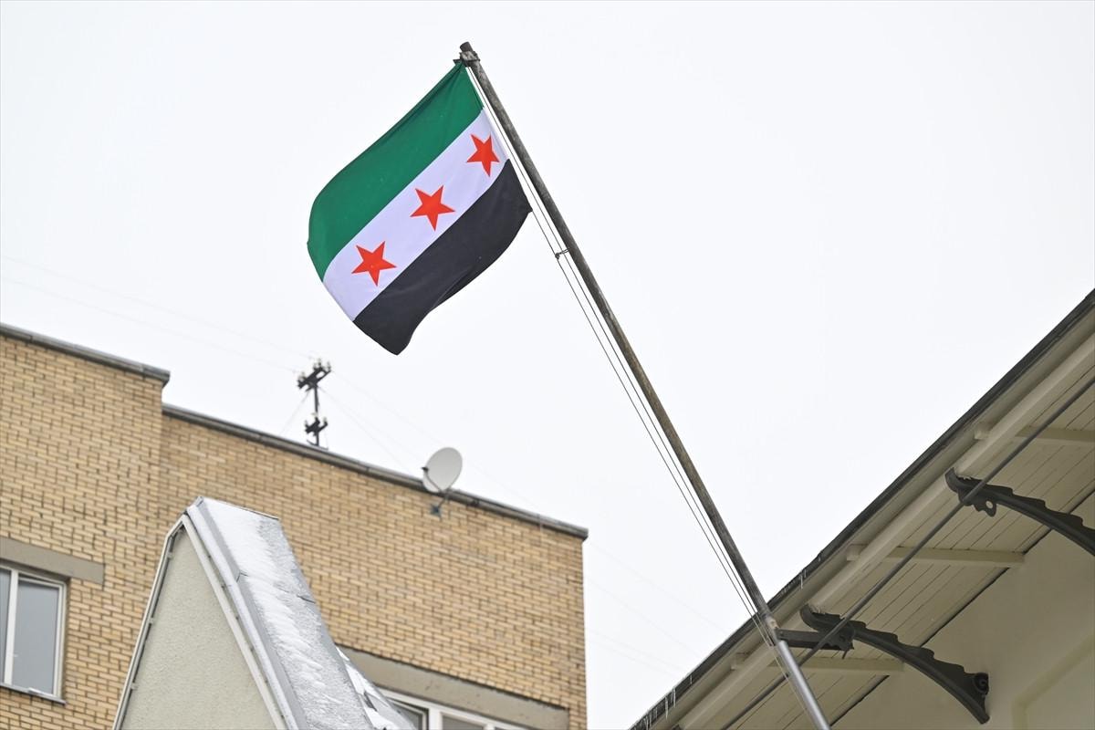 Büyükelçilik binasında, yeni Suriye bayrağı göndere çekildi.