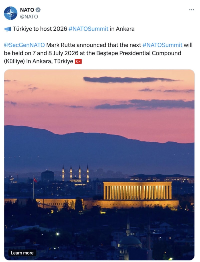 2026 NATO Liderler Zirvesi, Türkiye'de yapılacak.