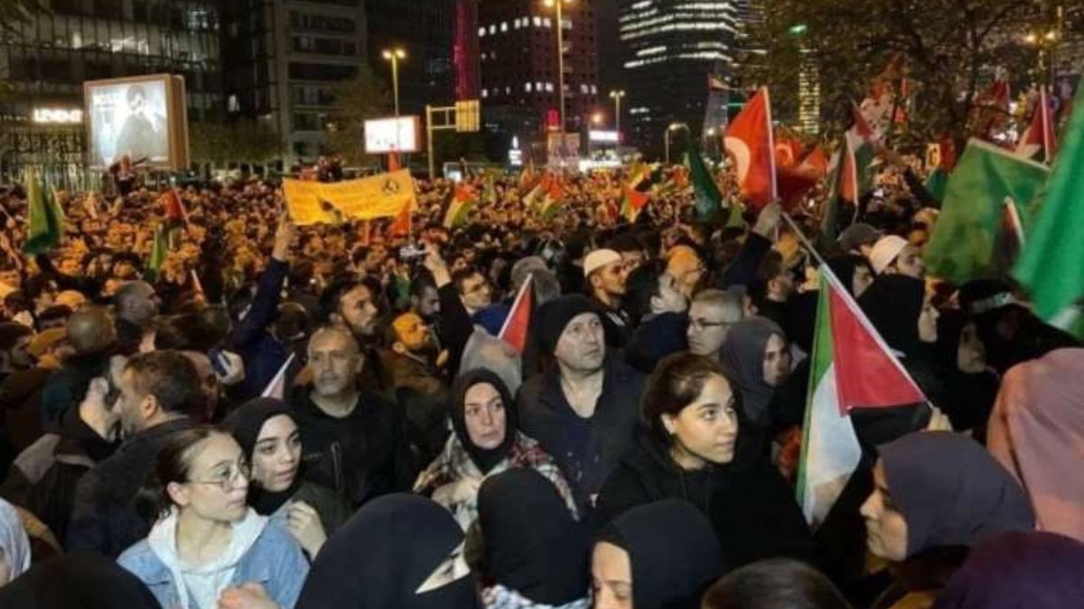 İstanbul’da da İsrail Konsolosluğu önünde bir araya gelen vatandaşlar, hastanedeki saldırıyı kınayarak İsrail’e tepki gösterdi.